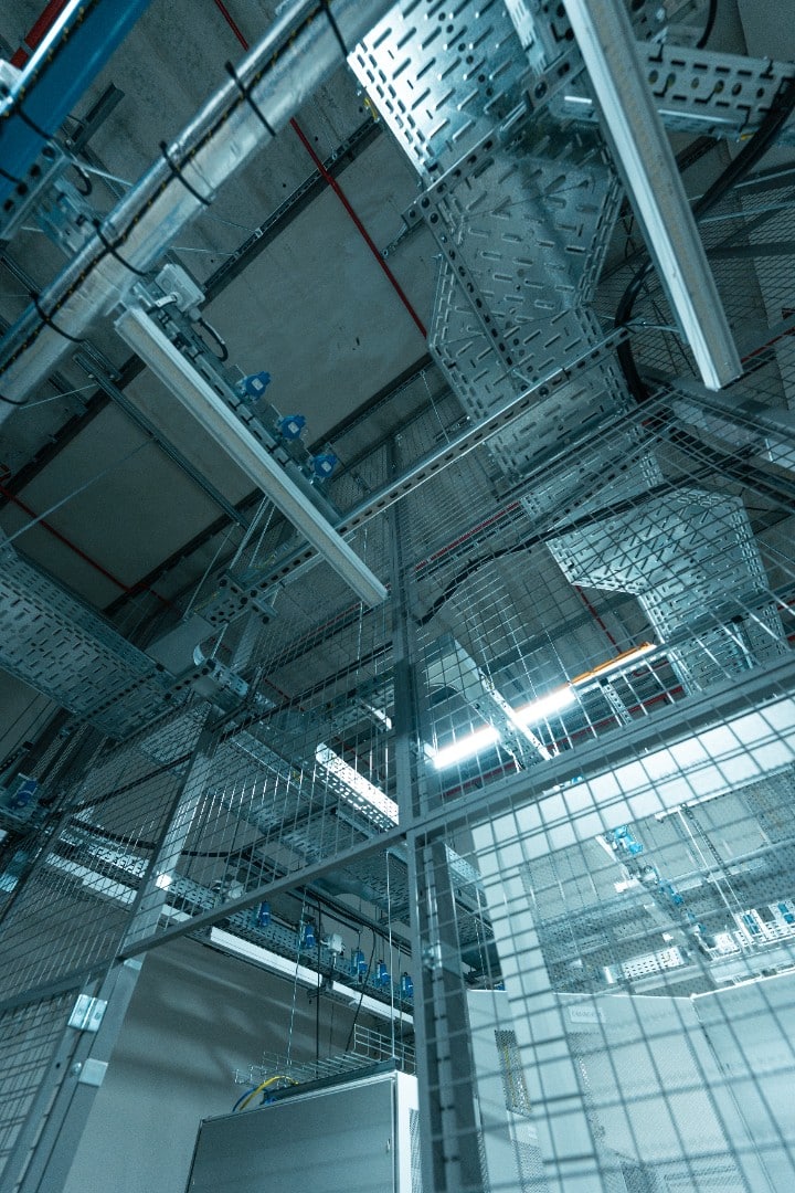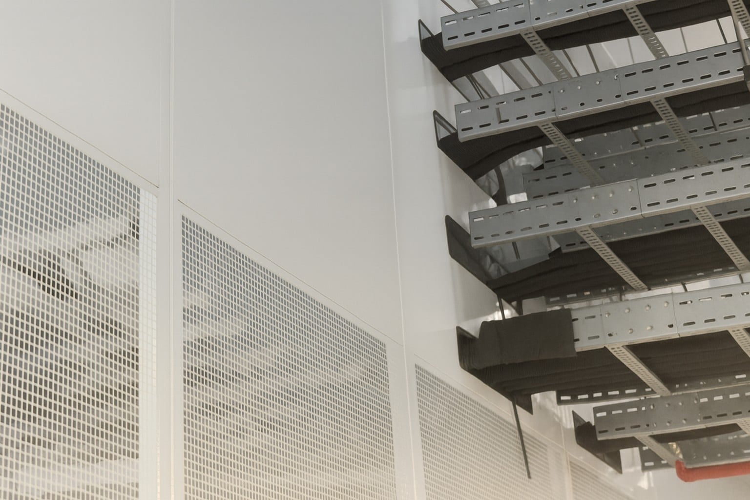 Each cage connects directly to raised floors, structural ceilings, HACS and concrete slabs. Openings for cable trays, piping and mechanical systems are fully coordinated to ensure compatibility with the wider infrastructure. Our mesh systems deliver stable, secure performance while preserving thermal efficiency.